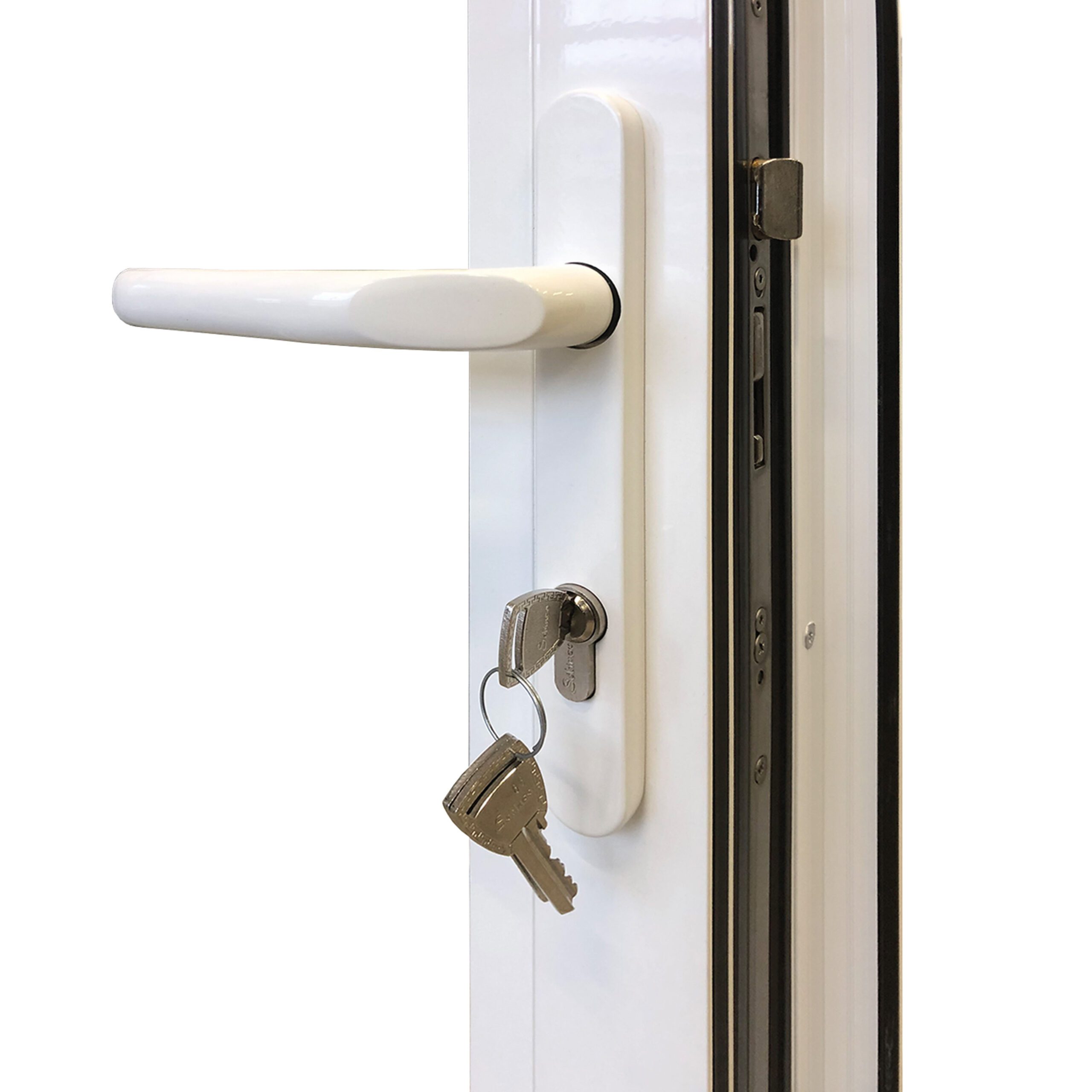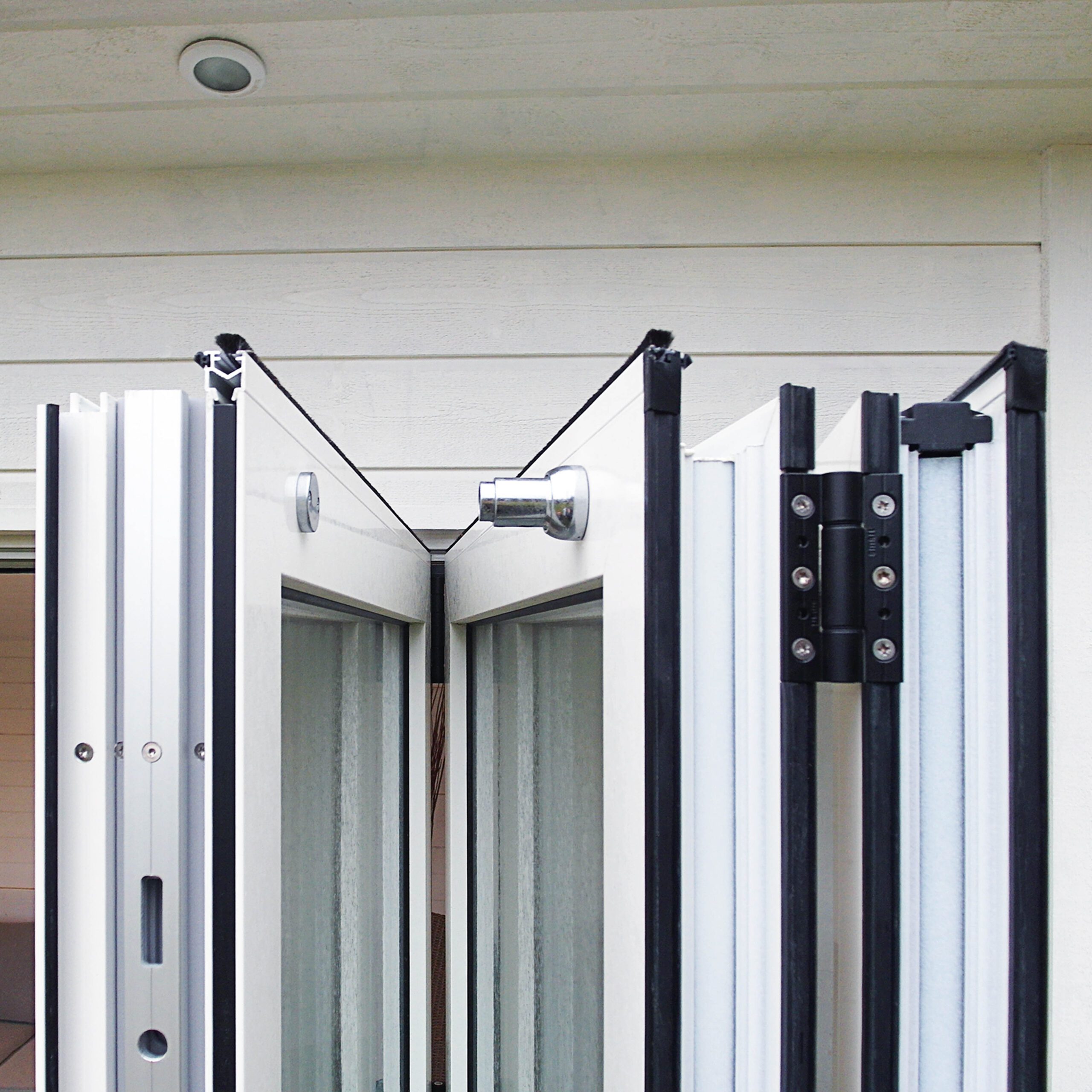 Halles vikpartier levereras som standard med vitlackerade aluminiumprofiler, RAL: 9010ps.