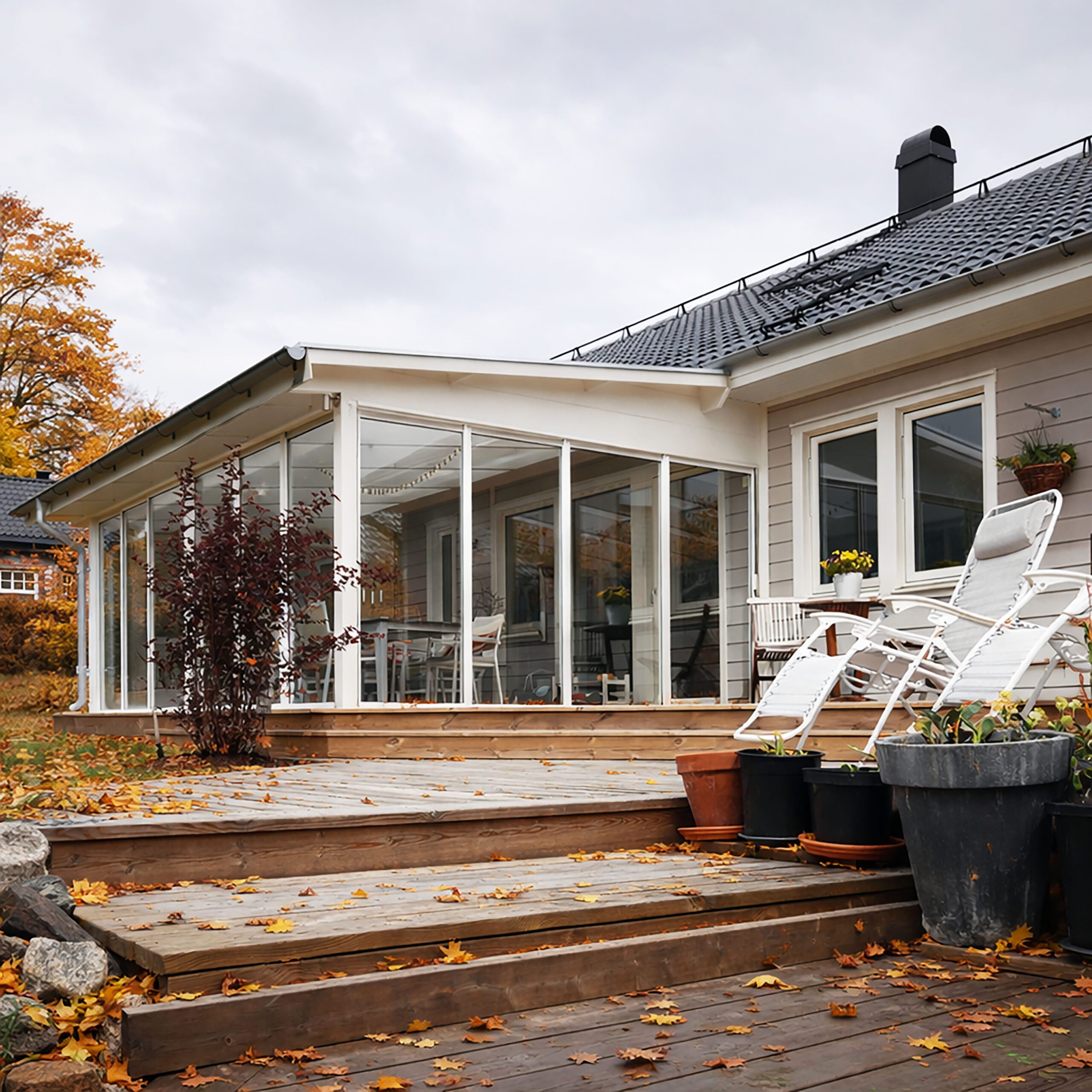 5 års användargaranti för konstruktion och materialfel när produkten används som väggar till uterum. Garantin innefattar ej glas.