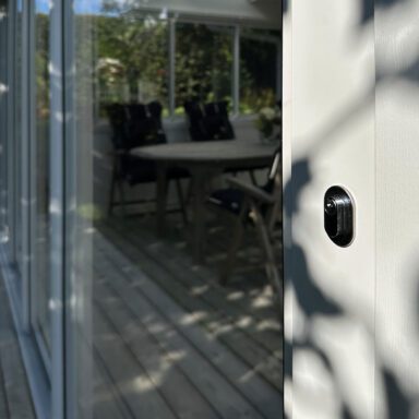 Uterumssystem med isolerglas är anpassade att användas från tidig vår till sen höst. Ett skjutbart dörrparti med Isolerglas D4-9 energi/argon, härdat glas avsett för uterum. Det härdade glaset är 5 gånger starkare än ett vanligt glas. Systemet är tillverkat i en modern design med integrerade draghandtag i luckornas profiler, vilket gör att luckorna blir stabila och enkla att öppna. Profilerna är tillverkade av lackad aluminium som ger dörrarna både ett fördelaktigt utseende och bra hållbarhet. Systemet kan beställas i vit, svart matt strukturlack, Alu/natur eller valfri RAL-kulör. Golvskenan är tillverkad av aluminium och har integrerat droppbleck och stansade dräneringshål för bortledning av vatten. Dörrarna låses med hjälp av integrerade hakregellås i sidoprofilerna, vilket är standard. Halle Solid Isoler är ett svensktillverkat uterumssystem anpassat för det nordiska klimatet.