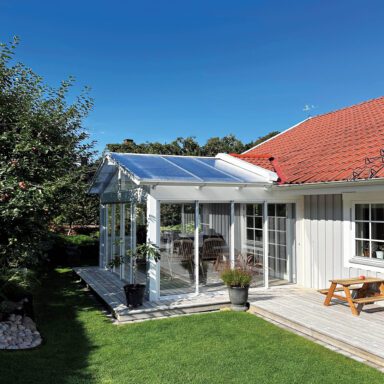 Glas: Energi/argon. OBS! Med energi/argon förlänger man säsongen, men systemet är inte ett vinterträdgårdsystem då det inte har bruten köldbrygga i luckor och karm.