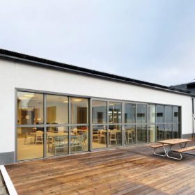 Sapa översikt över sjö genom ett 2-delat fasadparti