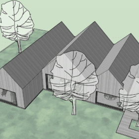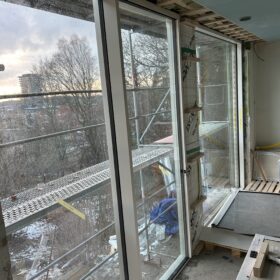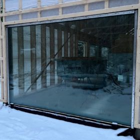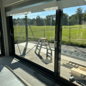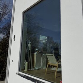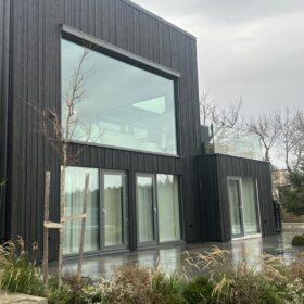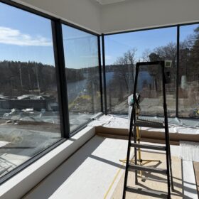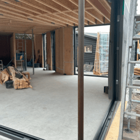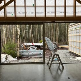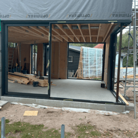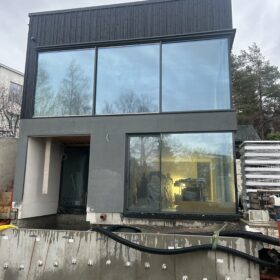 Byggprojekt av hus med stora glaspartier leverade av Halle System